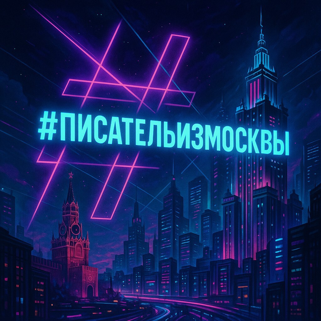 В моём воображении хэштег #ПИСАТЕЛЬИЗМОСКВЫ превращается в неоновую вывеску на крыше небоскрёба. Ты едешь по виртуальной магистрали будущего, и над тобой вспыхивает этот знак. Он не рекламирует товар, он напоминает, что слово ещё живо. В мире, где алгоритмы заменяют эмоции, а синтетическая речь вытесняет человеческую, тег становится огненной меткой: здесь писал человек.